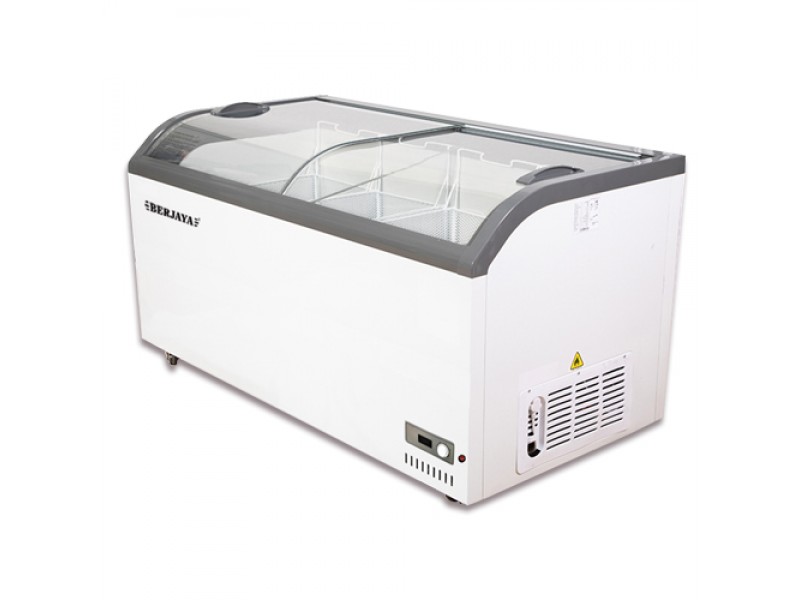 The Island Chest Freezer has a glass door that allows for easy product viewing. With an insulated interior, a static system, and non-CFC polyurethane insulation, it is energy-efficient and simple to maintain. While the paint finish lasts for years, the removable gasket makes accessing it for maintenance or cleaning simple.